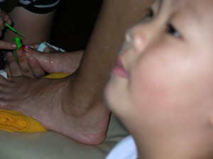 I stayed overnight in Chayi and Sunday morning, Carolyn and I had the most wonderful three hour pedicure which involved, soaking, defoliating, massaging and paraffin.