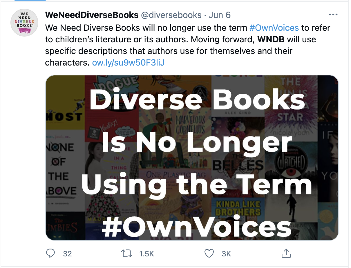 For more specific and threatening situations than these, We Need Diverse Books has decided to stop using #ownvoices in their work. I hope no one confuses this and thinks that having books created by marginalized authors is no longer a priority. It is very much is!!