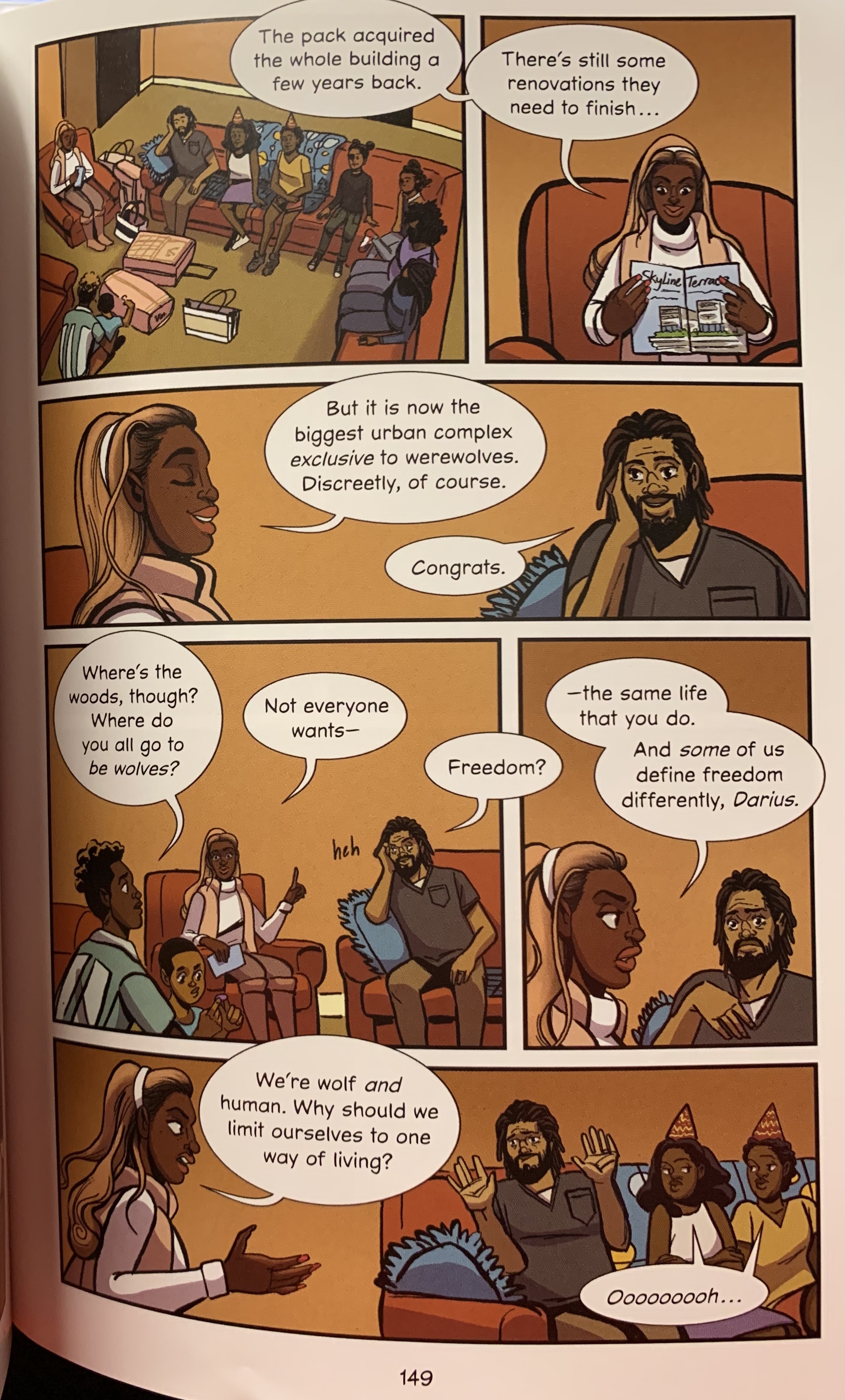 I recently admitted in one of my posts that speculative fiction is not my thing. And horror? Werewolves, vampires, ghosts and such? OH! Heck no! Yet, I picked up Artie and the Wolf Moon and entered the realm of werewolves. Stephens’ graphic novel isn’t just about a werewolf. It’s about Artie, a high school student and her journey of self-discovery. She’s developing her talent as a photographer, an interest she got from her deceased father; exploring romance and realizing that she is a werewolf and exactly what that means. Through the community of werewolves that provide safety to Artie and her mom, we begin to distinguish ways of being from lore. Even those these are mythological beings (?) there’s a continuity in the legends that tell their tales.