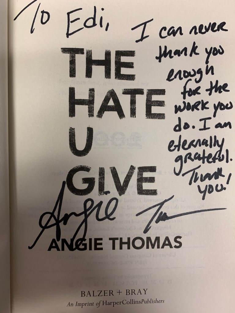 I’ve been doing a lot of research on Dr. Rudine Sim’s Bishop’s work on mirrors, windows and sliding glass doors lately. (1990) Inviting readers into the story in this way is what Bishop refers to as sliding glass doors, when “readers have only to walk through in imagination to become part of whatever world has been created or recreated by the author.” (Bishop1990) In providing more than one officer in the text, more than one way of performing the job, Thomas invites readers to engage in critical thinking not only around one particular event-the shooting- in the book, but how people in a society interact, whether it be boyfriend/girlfriend, best friends, parents, or siblings. Thomas added race to these relationships, causing us to think even deeper about how we work for each other’s liberation.